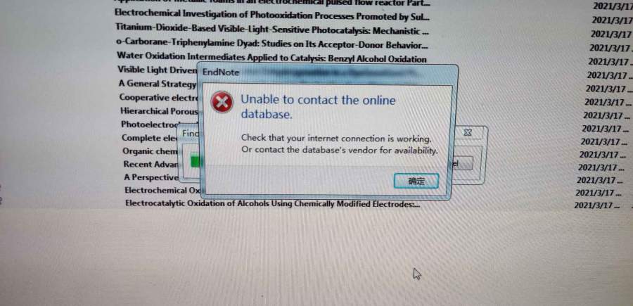 有大神知道怎么回事儿吗?文献已经下载到电脑上了,然后导入endnote里,想升级reference,就右键find reference updates就出现了下图所示的unable to contact the online database 有知道怎么回事儿吗?该怎么做啊,电脑重装过系统,重装前是没问题的 发自小木虫Android客户端 |