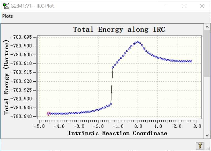 看起来是IRC过程中结构出现了突变。你先收看看这个IRC曲线 结构变化的趋势符合你的预期么。不符合的话就没啥可以调整的那估计就是TS之前没找对。如果趋势对 那你尝试用OPT(TS,tight,calcall) 重新优化一次过渡态 然 ...