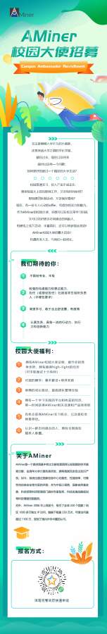 校园普通实习,投入产出不成正比 想体验高大上的互联网工作,又没有时间坐班? 想组建团队做活动,又苦恼没费用? 现在,有一份令人心动的offer,凭借你的实力和魅力。 作为AMiner的校园大使,你既可以在校正常学习科研,又可以结识更多志同道合的同龄人,组建线上线下活动,丰富简历,还可以收获现金奖励! AMiner校园大使招募大启动!机遇改变人生,与我们一起成长。 |