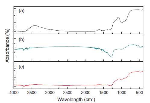图3 TiO2纳米颗粒的FTIR光谱:(a)TiO2-0,(b)TiO2-2和(c)TiO2-4
