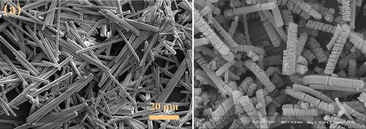按照文献方法,溶剂热合成Mil-68,MOF材料的结构跟文献不一致,如下图,左图为文献的效果;右图为我们自己合成的,结果形貌为一段段结构,请问大神这是什么情况?