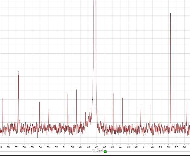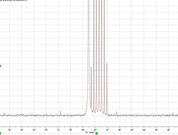 | 13C NMR 49ppm 处七重峰可能是什么,相对强度蛮强的,但对不上(溶液主要为DMF,甲醇,溴苯) |