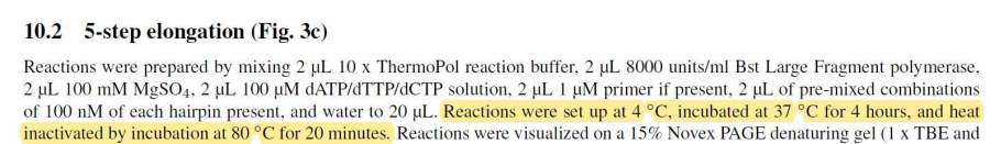 我的理解是反应从4℃开始,即在4℃下将反应物混合,然后放入37℃培养箱培育4小时,然后80℃下20分钟去活 发自小木虫Android客户端 |