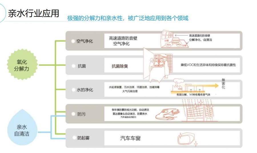 亲水涂层应用 汽车行业应用 / 家居行业应用 / 建筑行业应用 / 环境保护应用 抗菌 | 防霉 | 防氧化 | 防起雾 | 自清洁 | 抗静电 | 防尘 亲水涂层(Hydrophili ccoating)是通过特殊方式将符合生物学的高分子通过改性方式,有机地结合到产品 表面形成的一种具有功能性能的涂层,因具良好的亲水性,亲水涂层在常态是以干膜的形态呈现,这种涂层 一但遇水后会被激活,会变得十分润滑,能够将产品材料本身的摩擦系数降低98%-100%,起到亲水、抗菌、 易清洁; 发自小木虫Android客户端 |