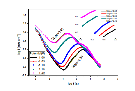 求助有关—计时电流法做双对数曲线图通过斜率判断成核机理的相关文献