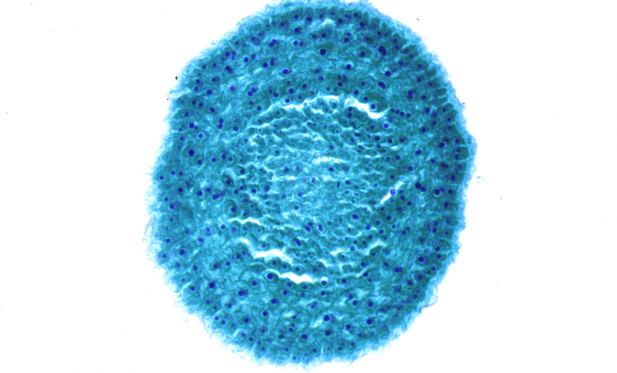 如图,对木本植物根进行番红固绿染色,结果出现下图中的情况,请教下图中的点点是什么原因?