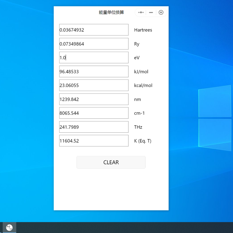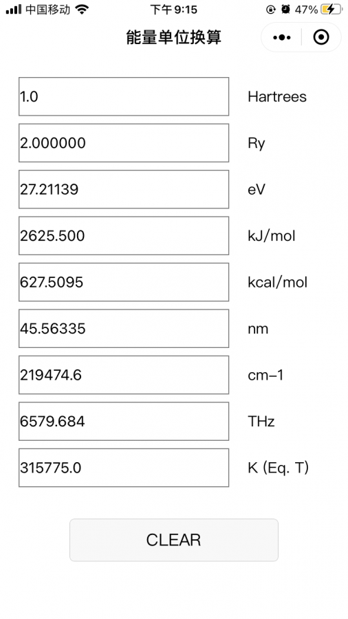 推荐微信小程序,方便做物理中不同能量单位的数值之间相互转换。手机端电脑端都可用。 欢迎使用,评论,转发。 发自小木虫IOS客户端 |