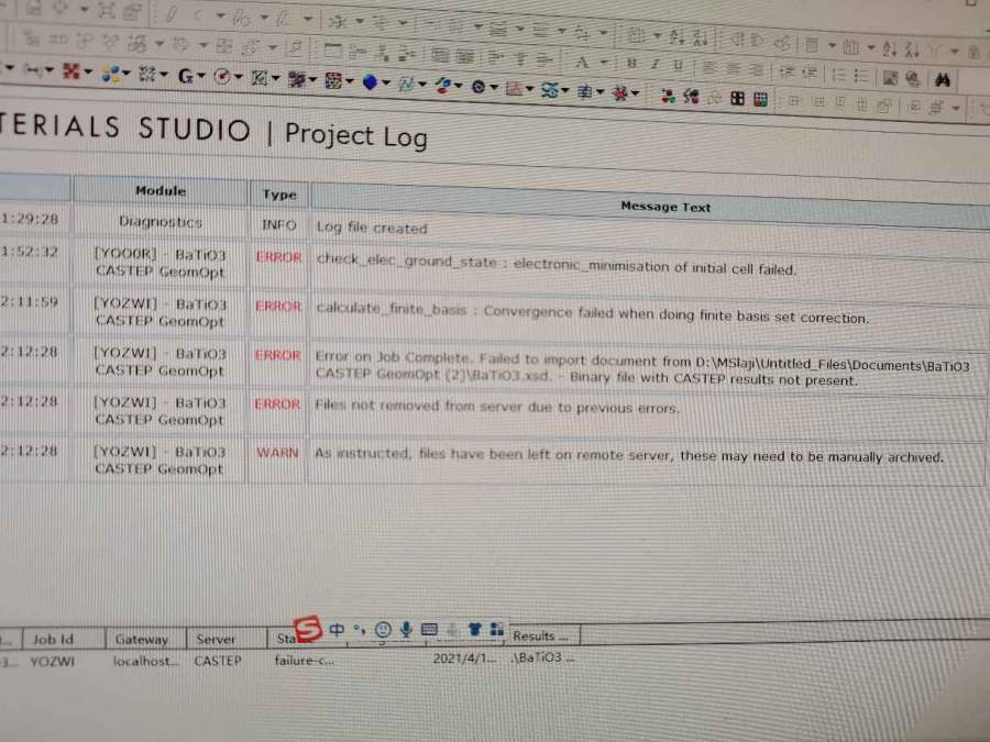 各位大神,最近学习MS遇到好多问题,希望各位大佬不吝赐教!问题:插入缺陷前,用castep计算都正常,没有错误,建立2x2的超胞后,替换一部分原子,再进行晶格优化,就出现错误了,想请教各位大佬在进行缺陷建模时,一般是怎么做的,遇到我这种问题该怎么办。(求助)