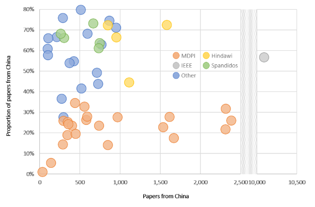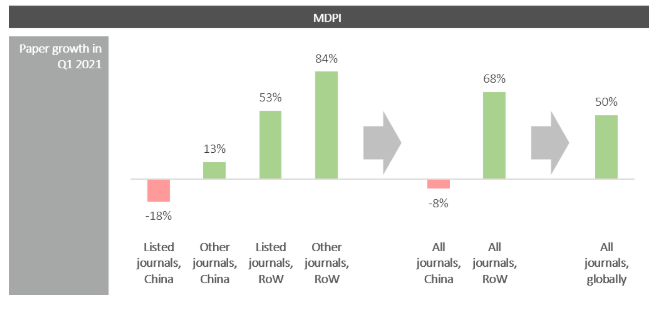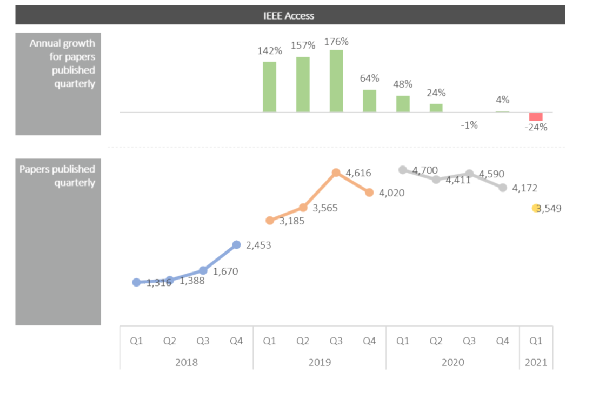 编者按:今天翻译的这篇文章原文来自The Scholary Kitchen,作者是Christos Petrou。他是Scholarly Intelligence的创始人和首席分析师。本文只是节选部分内容。 2020年的最后一天,中科院文献情报中心发布了第一份国际期刊预警名单。(狼终于来了:中科院公布SCI期刊预警名单)虽然它只包括65种期刊,但该名单以完全开放获取(OA)期刊为目标,并从绝对或相对角度发表了大量的中文论文,特别是IEEE Access、MDPI出版的若干期刊和Hindawi出版的四种期刊。预警名单发布已经超过三个月了,其影响已经在出版物数量上显现出来。 例如,IEEE Access经历了自2019年初以来最糟糕的季度,而MDPI上榜期刊从中国获得的投稿越来越少。 期刊数量少,但OA论文多 在Scimago索引的26000种期刊(Scopus数据)中,名单上的期刊只占微不足道的0.2%。然而,完全OA期刊有43本(总计65种预警期刊),2020年发文量超过1000篇的有40本,并且他们发表了大量来自中国的论文。以2020年的总量计算,这65本期刊总计发表来自中国的论文总数为51000篇,完全OA中文论文总数为43000篇,分别占这一年中国论文总数的6%和22%。也就是说几乎四分之一的完全OA中国论文来自于这65本期刊。 到目前为止的影响 巨型期刊是一项危险的业务,成功的大型期刊在其影响因子下降后,会进入一段动荡和缓慢衰落的时期。2019年夏季,IEEE Access 的影响因子达到4.1的峰值,在2020年夏季降至3.7。虽然出版物数量没有完全下降,但2020年的最后两个季度与2019年同期持平。 IEEE Access被列入了预警期刊名单,表明一个比megajournal(巨型期刊)更有风险的是一个过度依赖某个地区的megajournal。2021年第一季度,IEEE Access经历了2019年年中以来的最低季度文章出版量,年度下降24%,3月份同比下降34%。 中国作者的大量出走是导致这一数字下降的原因。这一现象在IEEE Access影响因子降到4.0以下(中国作者对影响因子波动特别敏感)后开始,在预警名单发布后加速。有趣的是,该期刊在其他地区的发表量一直在增长(没有中国作者的论文在3月份增长了11%,而有中国作者的论文下降了60%),但对中国作者市场的过度依赖和下降决定了它的发展方向。 图:IEEE Access的季度论文量和年度增长(数据来自IEEE网站) 与IEEE Access类似,MDPI预警期刊来自中国的发表量也有所下降。与IEEE Access相反,MDPI的多元作者来源能够更好地承受冲击。这是因为(1) MDPI发表的期刊来自中国的内容较少,(2)未上预警期刊名单的其他期刊在中国仍在增长,(3)所有期刊在世界其他地方都在大幅增长。2021年第一季度,MDPI同比增长50%,尽管其中文内容减少了8%。MDPI计划在2020年出版超过20万篇全OA论文。由于其投资组合方式和区域多元化,MDPI在其他公司步履蹒跚时蓬勃发展。 图:2021年第一季度MDPI期刊发表论文的年度增长率 (RoW代表“世界其他地区”; 数据来自MDPI网站) 对外国出版商和期刊政策制定者的影响 国际出版商和期刊政策制定者应该考虑的问题是,去年有一个政策引入了2万元 (约3000美元)的APC上限,以及国家科技计划专项资金可以支付的论文限额。中国是否会在预警期刊名单的基础上,导致进一步的限制APC行动吗? 作者: Christos Petrou 参考文献: https://scholarlykitchen.sspnet. ... rnals-warning-list/ |