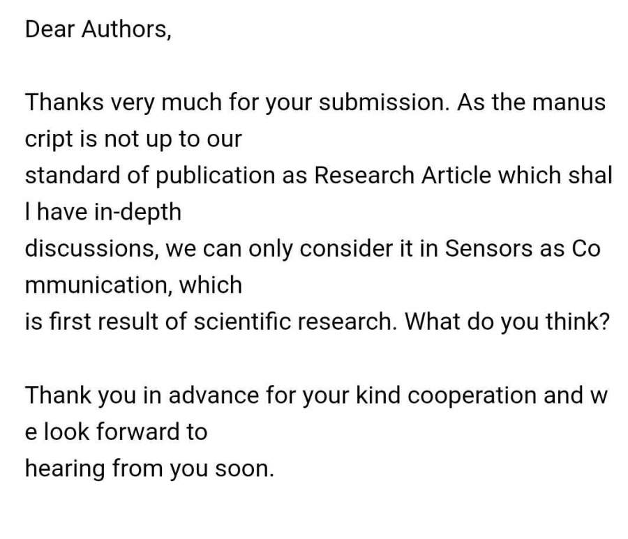 本来想投一篇sensors 的articel,编辑让改成communication 这两个有什么区别么? 发自小木虫Android客户端 |