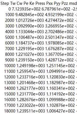 我的模型和图片中的类似, 我对物块两端固定,xyz采用周期性边界条件,对两物块其余部分分别使用同样的npt ,温度设置为698K,压力为1个大气压。为什么温度达不到设定的698K,并且两部分温度还不一样,求大神帮帮我![]() |