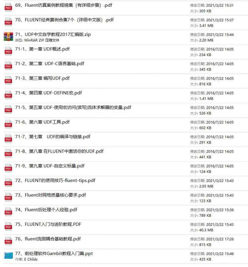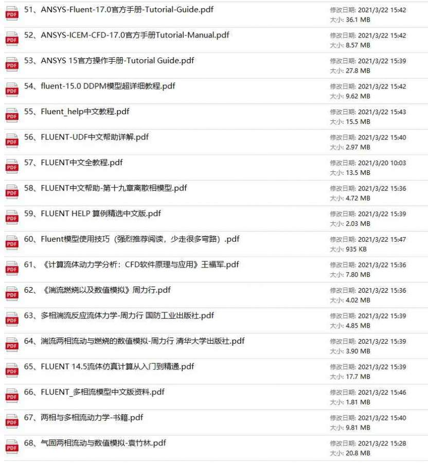 非常全面的fluent资料,多相流,离散型,传热,流体流动,UDF,网格划分,tecplot后处理等等!想要的虫友们,加我QQ号1416517466,并在下方留言,让更多的人看到! 发自小木虫Android客户端 |