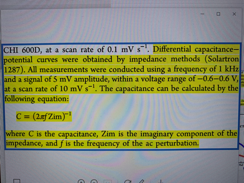请问一下有没有大神知道电极的微分电容曲线是如何用交流测的?具体是交流阻抗还是交流伏安?实验需要用两电极还是三电极,具体的参数怎么设置呢? 图是文献里面的数据图,但是测试方法说得不太清楚。 @Gamry-电化学 发自小木虫IOS客户端 |