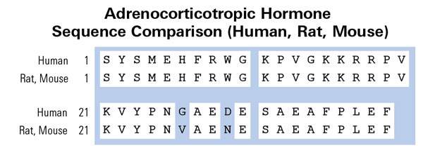 我们研究了ACTH 1-39(ACTH)和源自N末端(ACTH 1-10,乙酰基-ACTH 1-13-酰胺[alpha-MSH])和C末端(ACTH 18-39)的肽的中心作用以及在禁食16小时或随意喂食的大鼠中喂食该肽的ACTH 22-39)。正如预期的那样,尽管促肾上腺皮质激素的作用在禁食的大鼠中更为明显,但ACTH减少了进食和先前禁食的大鼠的进食。N末端衍生的肽α-MSH,而不是ACTH 1-10,在禁食16 h的脑室内(icv)注射后2 h内减少了2小时的累积食物摄入,但未在进食的大鼠中。相反,在禁食的大鼠中,C末端片段的摄食会产生持久的增加,而在摄食的大鼠中则不会。公认ACTH的N末端片段的厌食作用是通过黑皮质素MC4受体介导的。 Al-barazanji KA, Miller JE, Rice SQ, Arch JR, Chambers JK. C-terminal fragments of ACTH stimulate feeding in fasted rats. Horm Metab Res. 2001;33(8):480-5. https://www.ncbi.nlm.nih.gov/pubmed/11544562 ACTH-human.jpg |
