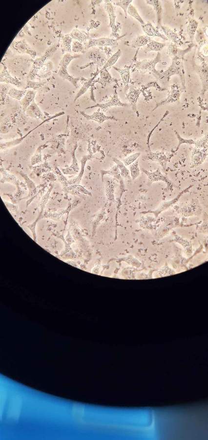 细胞发现有很多黑点,这是40倍显微镜下,不能上传视频,这个照片小黑点还不咋多,也不太清晰。 镜下不动培养皿,黑点一直在小幅度运动,还挺快的。 由于时间问题,没换液观察,也没看培养基是否澄清,感觉这几天细胞状态就不太好,培养基有些容易变黄(刚传代的细胞黑点少,培养三四天黑点很多)。 还有就是我不小心用了未灭活的四季青血清2天,请问会是这个原因吗,但是回想看这几天细胞状态就不咋好,本以为是加药的问题。 发自小木虫Android客户端 |