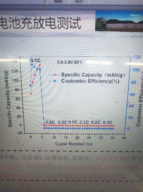 我做的是PEO固态电解质,但是随着循环圈数的增多,放电比容量在逐渐增加,这是怎么回事呢?另外从0.1C跳转到0.2C,放电比容量降为零了,这又是怎么回事呢? 发自小木虫Android客户端 |