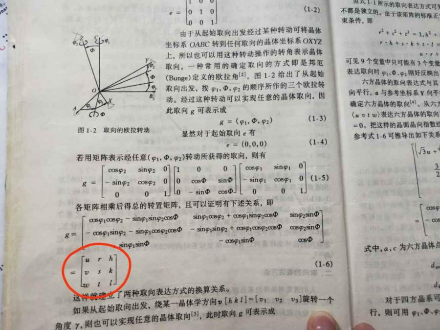 谢谢!想再请教您一个问题,图上inp内容是我截取huang的单晶模型,蓝色画圈部分的全局坐标密勒指数 (0 0 1)和 (0 1 0),对其进行欧拉角转换时,分别对应书本上的g矩阵的(u v w),(r s t)或者(h k l)中的哪两个?怎么判断? 发自小木虫Android客户端 |