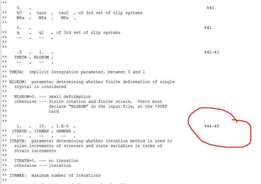 我想请教一下,黄umat文件里定义了160个材料参数,(分别放到20张卡里,每张卡默认8个参量),我将黄的inp文件调入到abaqus,发现材料参数那块显示46个参数,后来我去inp文件数了一下材料参数具体数值的个数,确实只有46个,也就是其他没输入的默认没有了,并不是以0进行输入。请问,我这个理解对吗?如若是这样的话,那岂不是材料定义与for文件不能一一对应,相互矛盾了? 发自小木虫Android客户端 |
