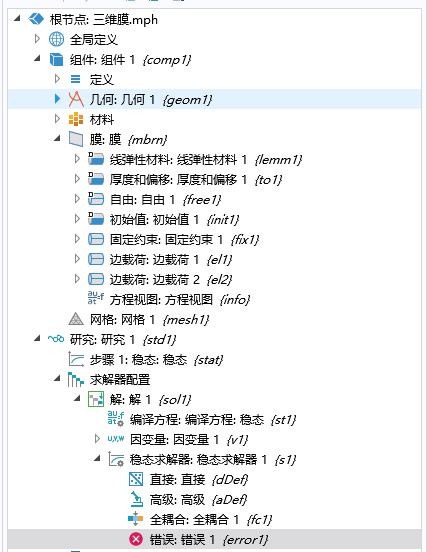 COMSOL怎么在结构力学模块下对膜施加垂直载荷?