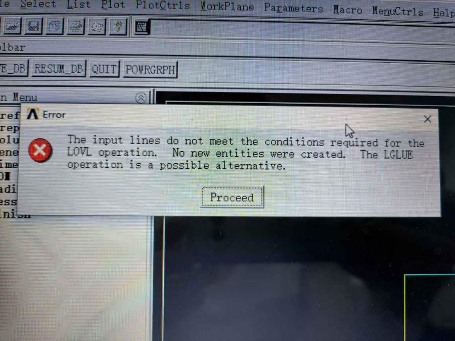这个错误大意是说: 不存在 LOVL 命令操作的条件,可以改用 LGLUE 命令试试。 估计是你进行 LOVL 操作的线段,相互之间没有交点 (端点连接不算)。 如果解决不了,可以把你的命令流发给我,帮你看看: htbbzzg@163.com |