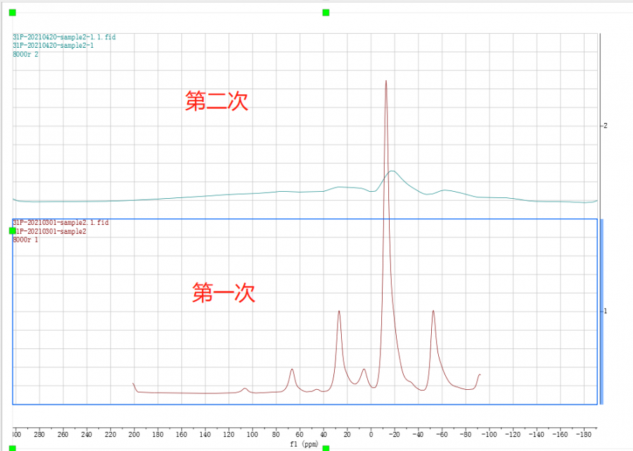 请教大家,我在做固体磷核磁的时候,同一个样品前后两次测试结果差别巨大,现在不清楚什么原因,据测试人员说是中间核磁设备布鲁克500M维修过一次,但前后测试条件完全一致,我想知道为什么峰高,峰位移会有这么大的差异?主要的原因可能有哪几点?第二次测试的数据还能用吗?催化剂VPO的固体磷核磁是看峰面积还是看峰高?谢谢 发自小木虫IOS客户端 |
