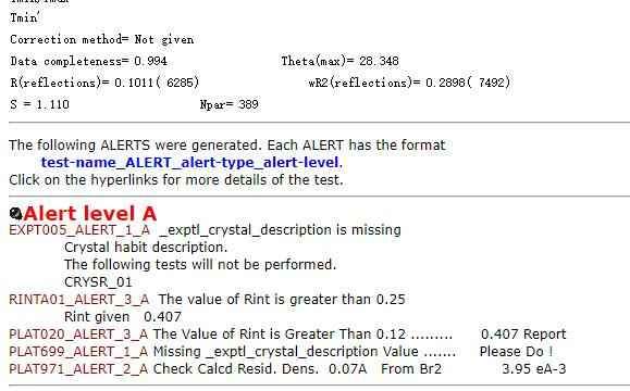 本人是初学者,不会精修单晶,check cif检测后有a类错误,想问问怎么消除呢,可有偿 发自小木虫Android客户端 |