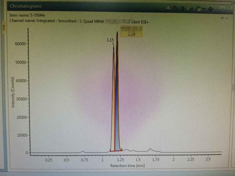 各位大佬好,最近用SPE前处理样品,甲醇洗脱后,氮气吹干用20%甲醇复溶,上LCMSMS,得到的峰劈叉了,图对应浓度分别为10、1、50ng/mL,因为目标分析物还有一个A ,这个是A的代谢产物B,有考虑到两者使用分子量大小相同的子离子,可能是出现源内裂解,遂降低了锥孔电压,发现并没有有效改变峰型,因为浓度增加两个峰都增加,排除了基质干扰,有没有可能是在在样品处理过程中导致代谢产物B转化为A 。或者有其他原因,感谢各位 发自小木虫Android客户端 |
