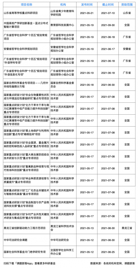 基金快讯(2021-5),科技部多项专项课题申报开始了——还有环境、教育、医学等