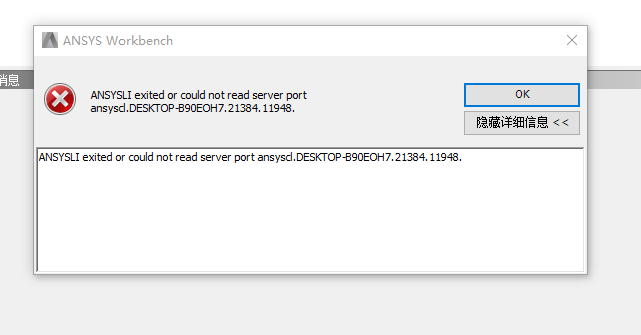 ANSYSLI exited or could not read server port ansyscl