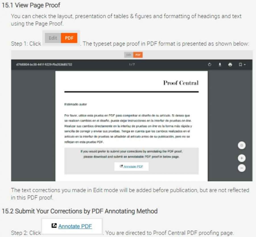 由于邮件里面提到可以在线校稿和PDF注释离线校稿两种方式,为避免出错,导师要求采用PDF离线校稿。在系统的help里面找到两种关于View page proof 的方式(如图:1-2),其中15点里提到了PDF提交的方式,但是本人的实操页面未发现此键(如图3),反而与14一致。难道是存在隐藏按键吗,真是令人头秃!还是说不同期刊不一样? 救救可怜的科研小白吧,望夜深梦浅淡且有经验的大佬指点一二,不胜感激! 发自小木虫Android客户端 |