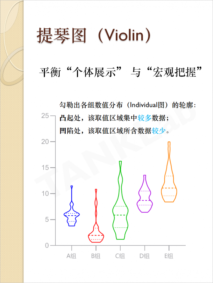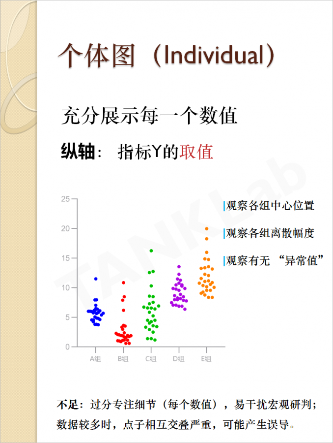 (3)直观比较各组数据的“中心”值或“平均”值;