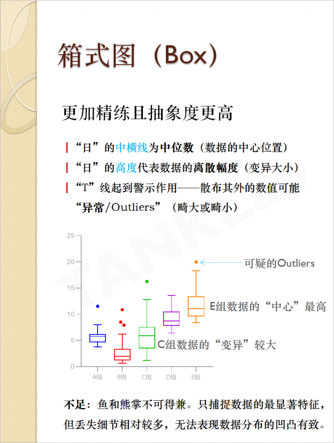 (4)直观比较各组数据的“变异”(或“离散”、“波动”)幅度;