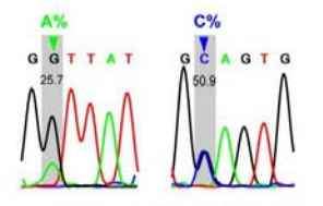 文献中是说通过bioedit软件对sanger测序峰图分析就可以得出还突变位置碱基的含量,请问是通过峰值的高度比出来的吗,还是通过其他的方式 发自小木虫Android客户端 |