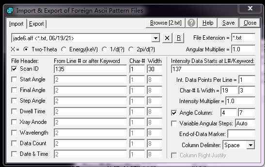按照这个,更改jade的file/patterns/import的设置即可直接读取txt,不用经过“数据格式转换程序”。我之前一直以为是软件不能正常使用,其实它们的安装包都能用。 发自小木虫Android客户端 |
