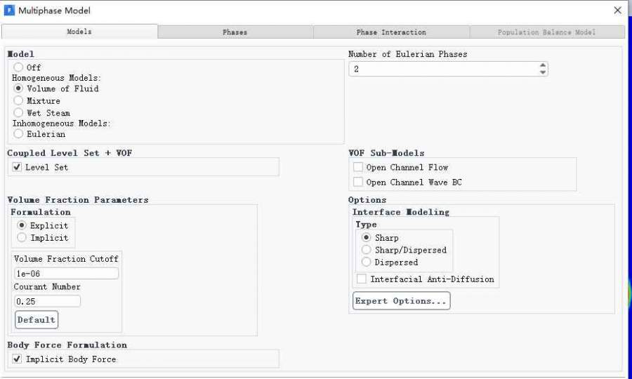 直径3mm的液滴从中心离地面3mm的高度下落,重力加速度-9.81,下方设置成wall,接触角30°,温度设置成-15℃,其他面设置成压力出口。时间步长1e-6,30000个时间步。液滴初始速度-1.4m/s,初始温度0℃,环境温度-5℃。算完发现液滴掉不下来,不知道哪里除了问题,特来请教,请大佬指点一二,万分感谢 发自小木虫Android客户端 |