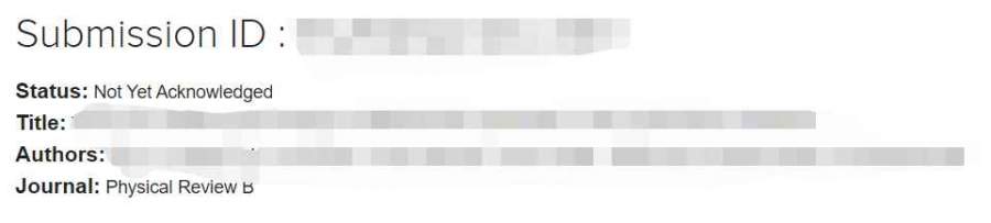 大家知道这个状态是什么意思吗?submitted后,显示状态显示Status: Not Yet Acknowledged。然后我发现竟然还能修改。这到底是投成功了还是没有?是aps的投稿系统,pdf都还没生成呢。 小白第一次投这个系统的期刊,真诚求助!有人知道吗? @Monash2011 发自小木虫Android客户端 |