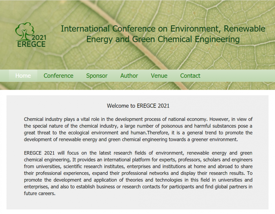 ¡¾EDP³ö°æ I È·±£¼ìË÷ ¡¿»·¾³£¬¿ÉÔÙÉúÄÜÔ´ÓëÂÌÉ«»¯¹¤¹ú¼Ê»áÒ飨EREGCE2021£©Õ÷¸åÆô¶¯£