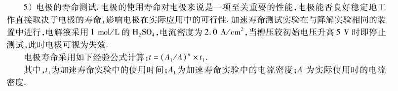 加速寿命实验在1mol/L的H2SO4溶液中,电流密度2A/cm^2条件下,经验公式:t=[(A1/A)^n]×t1(图片中有)其中n是什么?取什么值?
