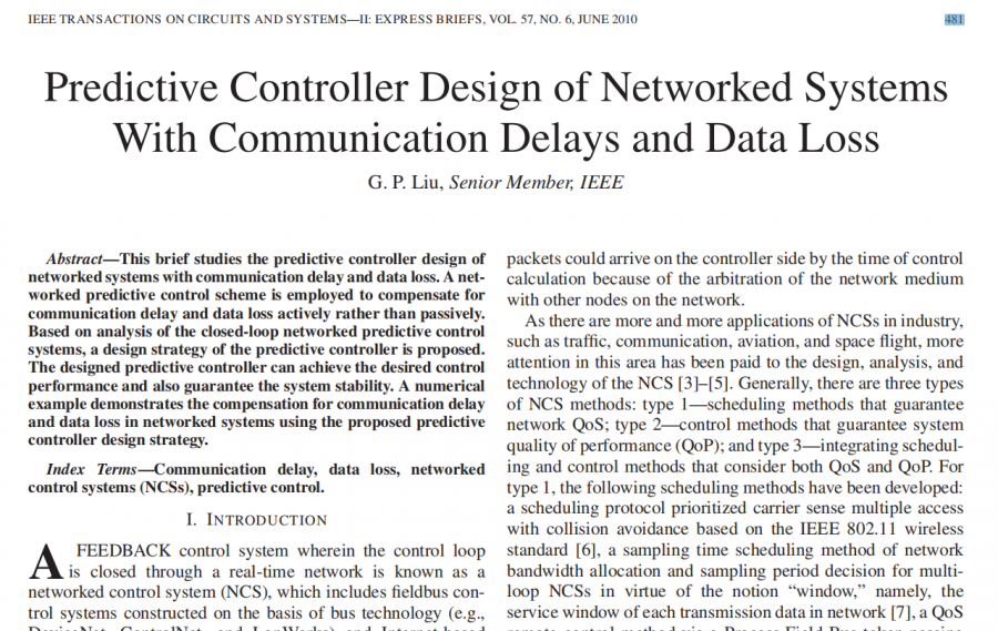 关于刘国平2010年的文章或文中相关网络预测控制方法的文献仿真求助