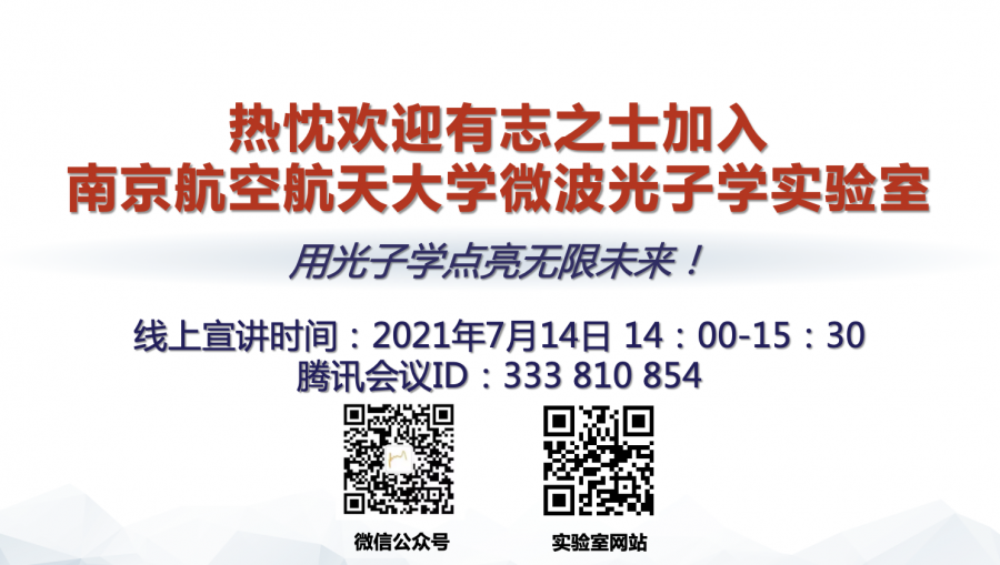 欢迎参加2021年南京航空航天大学微波光子学实验室线上招生宣讲