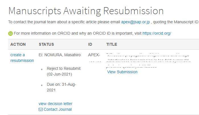 Applied Physics Express投稿的Reject to Resubmit,如果不想再提交该怎么处理?已有1人参与