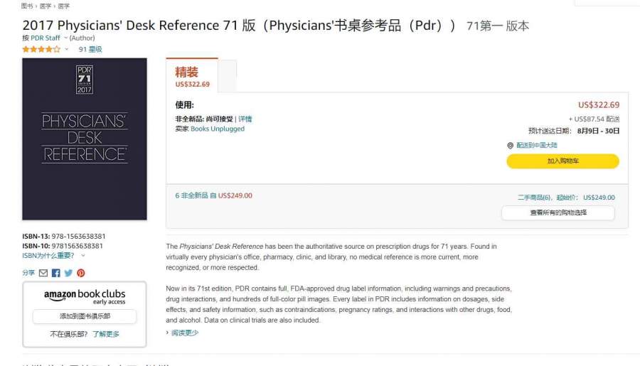 求助电子书:2017 Physicians' Desk Reference 71 版