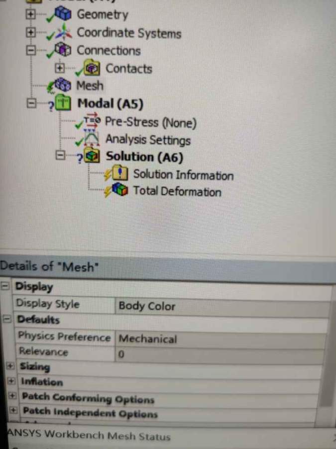 一个300多个零件的装配体,做模态分析的时候接触和网格都划分好了,到modal这一步前面就出现了一个大大的问号?这是为什么,求大神赐教啊!拜托拜托! 发自小木虫Android客户端 |