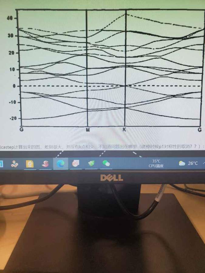 为什么我计算出来的能带结构图是这个样子的?不在0处,k点处相交,文献中的图也附上 1.自洽计算 得到CHG, CHGCHA 2.能带计算 通过syml,gk.x得到kpoints,附上syml,kpoints,incar 再进行能带计算 3.通过syml,EIGENVAL ,pbnd.x得到bnd.dat和highk.dat 发自小木虫Android客户端 |