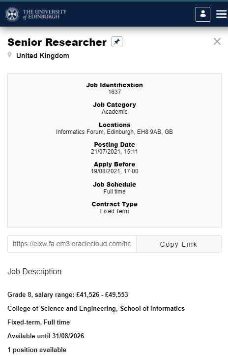 爱丁堡大学信息学院招高级博士后研究员,机器人与类脑计算方向
