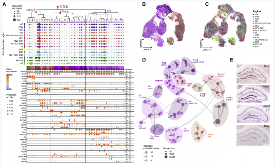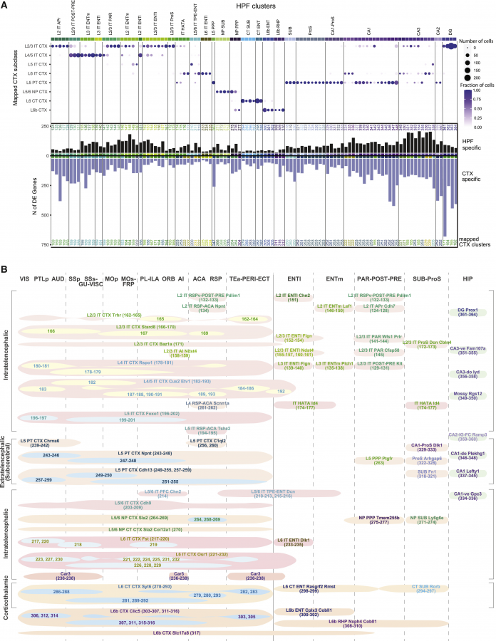 研究揭示了整个新皮层和海马结构的分子组织结构,表明这两种主要大脑结构之间存在进化上保守的细胞和回路组织。这一成果为今后的脑科学的功能研究打下了基础。