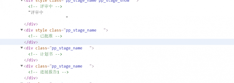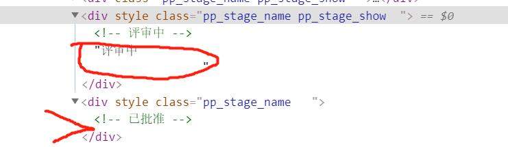 在即将出现的下一个评审进度圆圈下的字位置(估计一下)右键审查元素,把出现的各级代码点开,不知道有没有用。 目前第四个阶段感觉还未录入啊。 注:<!--已批准-->只是注释行,并没有任何意义。 图片1.jpg |