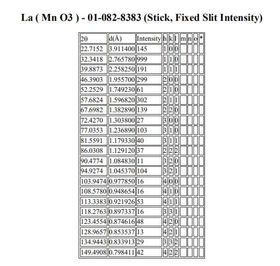 | 急求立方结构的LaMnO3的PDF卡片,非常感谢! |