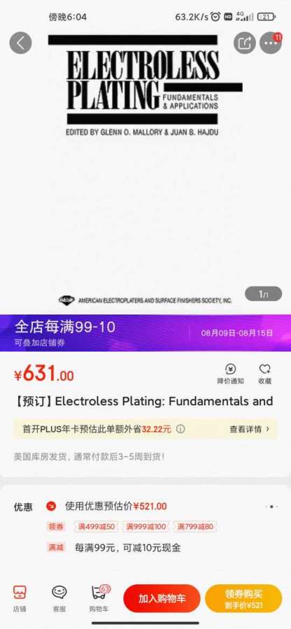 大家谁有这本书:electroless plating,或者PDF版,最近很需要 发自小木虫Android客户端 |