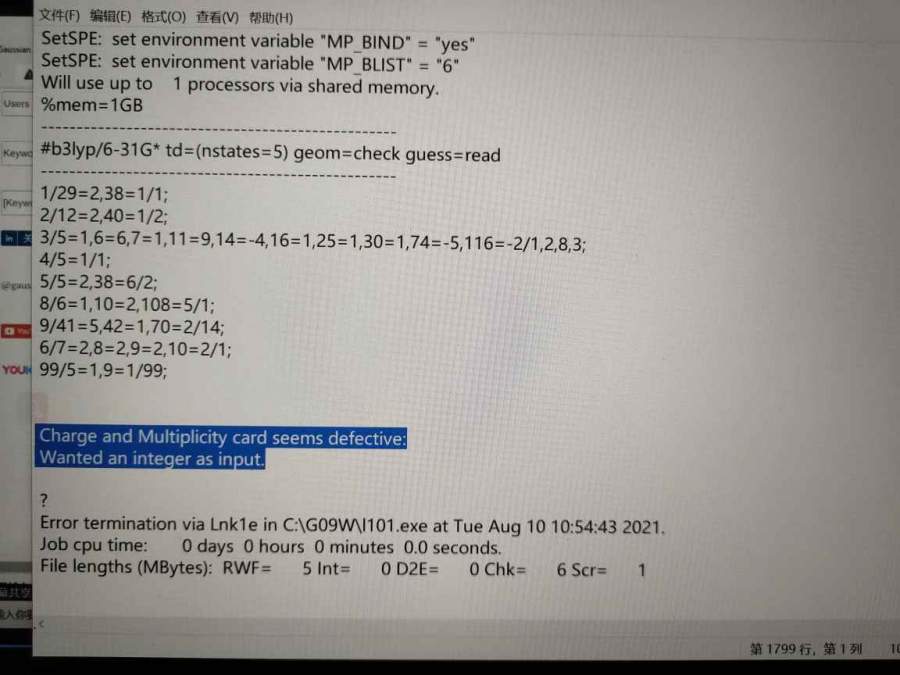 计算小白,在构象优化时出来这个错误,哪位烦劳给解释一下! 发自小木虫Android客户端 [ Last edited by paramecium86 on 2021-8-9 at 12:19 ] |